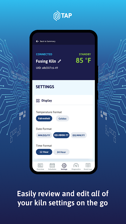 Maintaining complete control over your kiln is crucial, however, what happens when you need to step away from it for a long period of time? Should something go wrong, precious time, energy, and resources are wasted. With the TAP Kiln Control Mobile App, you can continue to remotely monitor, update, and maintain control of your kiln as though you never left.
