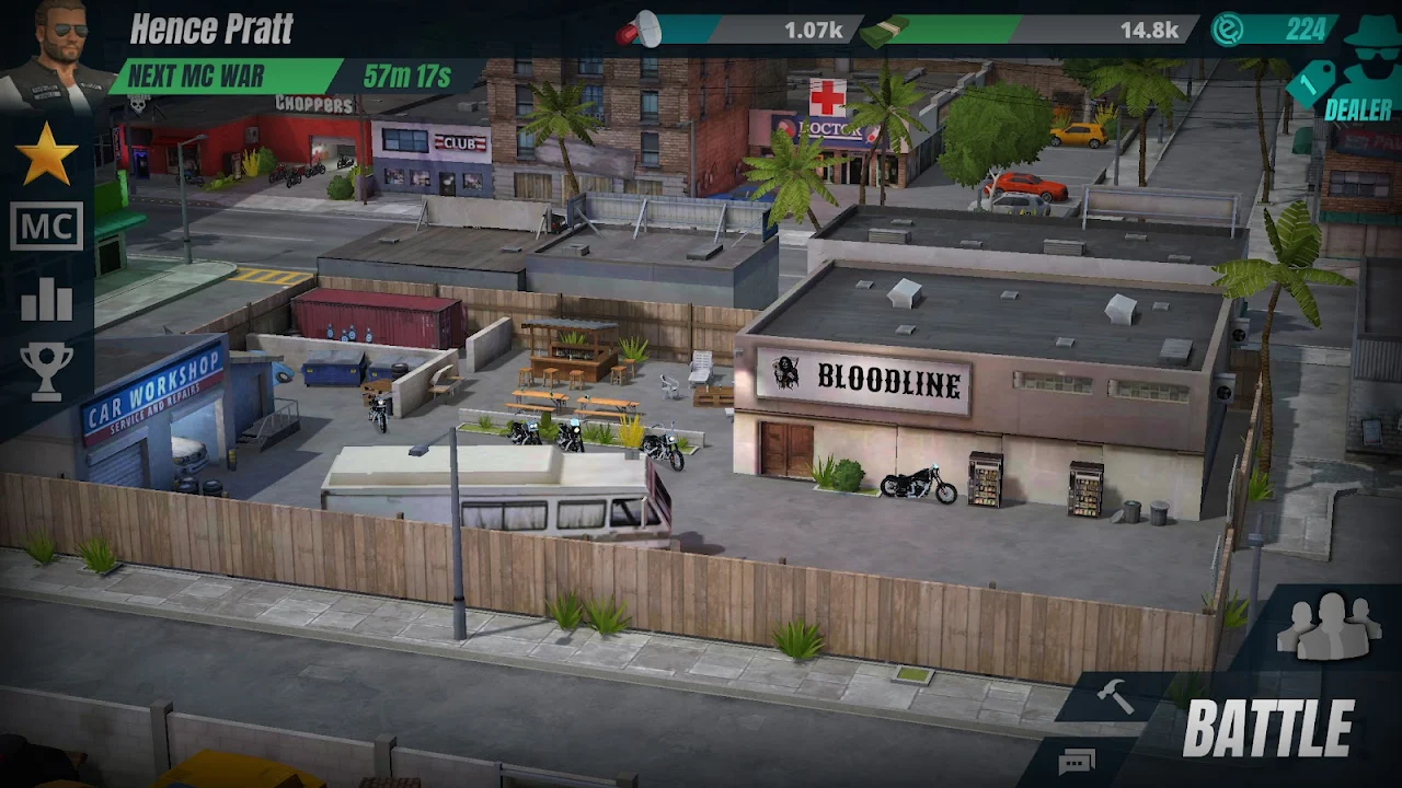 You can team up with other players to form a motorcycle club (MC) and create your own cool MC logo. You can assign ranks and tasks to your brothers and sisters. Decide on a strategy when you go to war against an opposing club and become the most respected MC in town!