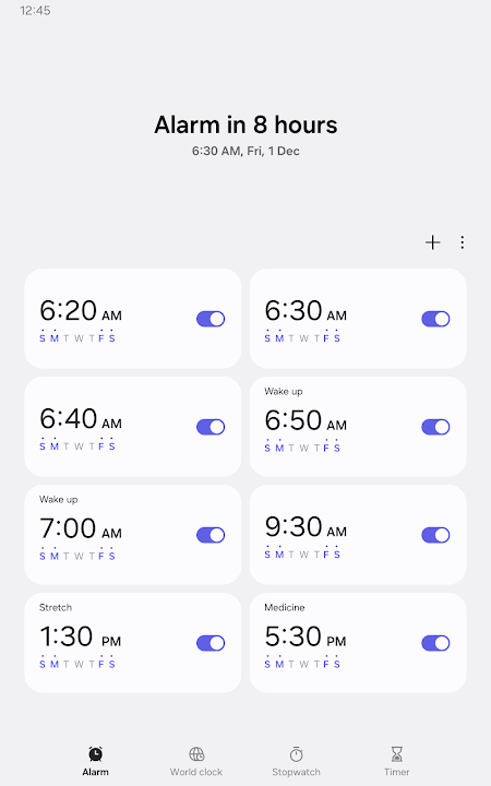 • Notifications: Used to show ongoing timers and notify you about upcoming and missed alarms