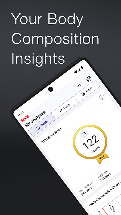 The seca myAnalytics app provides you with the results of the body composition analysis that you have performed at your fitness studio or with your nutritionist at any time.