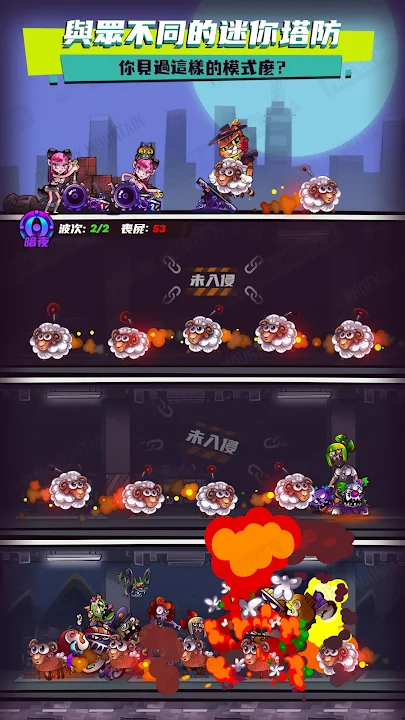 ● 暗夜降臨,殭屍四處遊蕩,正是他們的狩獵時刻。你的英雄將化身據點守衛者,守衛據點寸步不離,擊退樓下襲來的殭屍大軍。