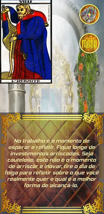 該應用程序如何工作?預測就像一個占星術,一張代表一天的塔羅牌。第一次約會將是關於愛情的。第二次約會將是關於性的。在第三次磋商中,將討論這封信中有爭議的一面。第四個查詢將是對以前查詢的概述。該應用程序遵循這些規則,為您提供當天的特定視圖,但如果您喜歡隨時查閱塔羅牌,商店中還有其他免費應用程序可用於此目的。正如一次諮詢可以數月或數年有效,塔羅牌在同一主題上不斷翻動和變化,不具有預測能力,因此每天一次諮詢就足夠了。