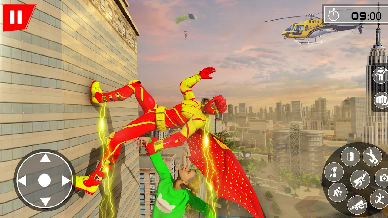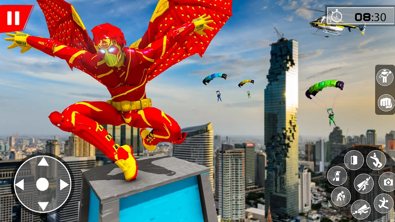 Fly in miami crime city become a flash speed hero and save people in hero games.