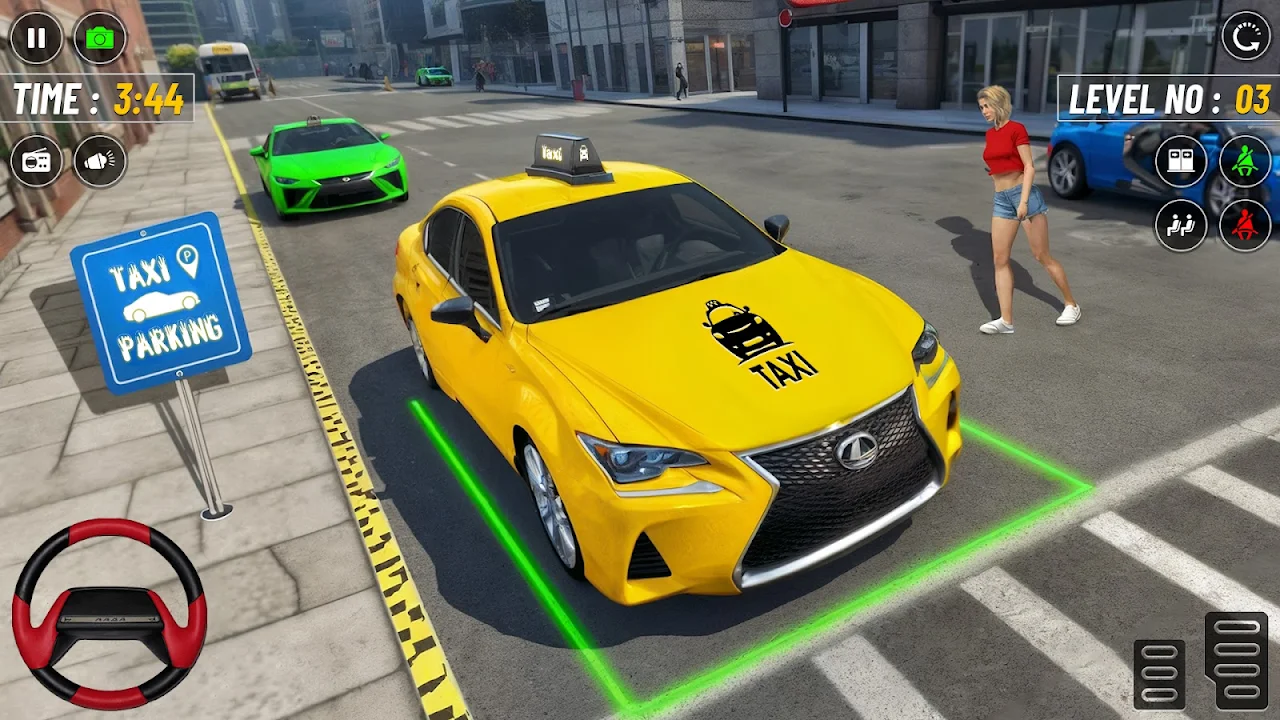 准备好在这款激动人心、身临其境的出租车游戏中驾驶出租车吧!游戏中包含一种引人入胜的游戏模式和十个充满挑战的关卡,让您体验在活力四射的城市中接送乘客的刺激。您可以选择三种不同的操控方式,例如方向盘、倾斜运动或按钮控制,以匹配您的驾驶风格。每个关卡都以简洁明了的指示开始,帮助您顺利完成任务。在城市中穿梭,同时欣赏不同的活力四射的背景音乐,为您的旅程增添活力。在四个不同的视角之间切换,让您可以灵活地从自己喜欢的视角驾驶,提升游戏体验。从狭窄的弯道到繁忙的交通,每个关卡都带来新的挑战和更多乐趣。无论您是新手还是经验丰富的司机,这款出租车游戏都能让您体验不间断的刺激。启动引擎,按照指示操作,证明您的驾驶技能,成为出租车司机专家。