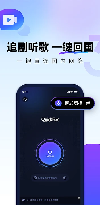 QuickFox is a high-quality accelerator specially created for overseas Chinese and students. It is a accelerator for overseas Chinese to watch TV dramas, listen to songs, play games, live events, business offices, futures and stock trading, etc.