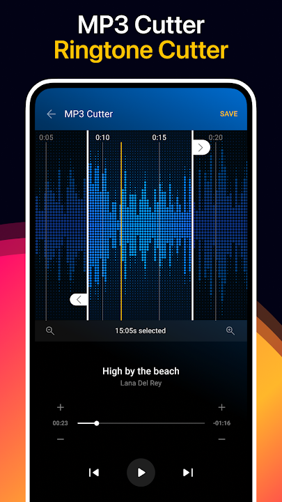 Cut the best part of the audio songs with this music player. Save your best music as your ringtone, alarm, notification, music files, etc. with this mp3 player.