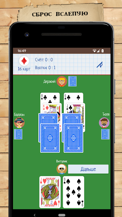 遊戲的本質就是收「賄賂」。擁有該動作回合的玩家透過使用一張或多張相同花色的牌「進入」來打開一墩。玩家將牌面朝上放在桌上。該回合的回合傳遞給下一個玩家(順時針)。