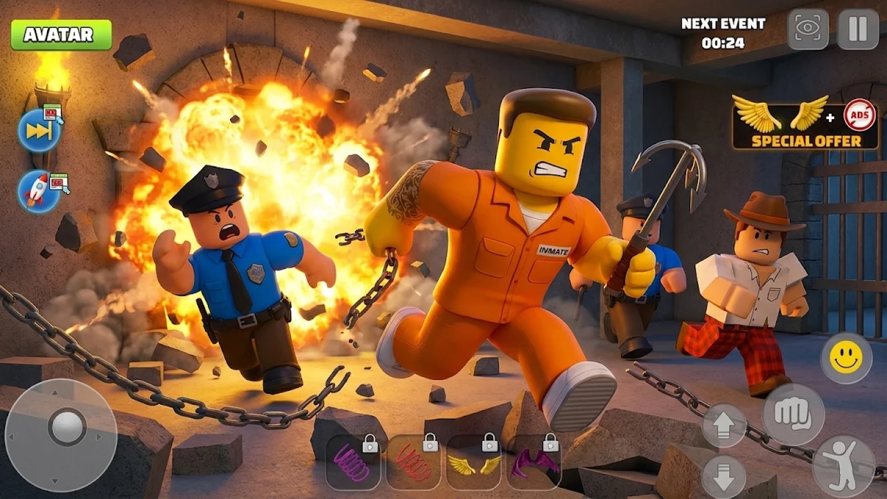 Escape the prison by running, jumping, and surviving tough challenge levels.