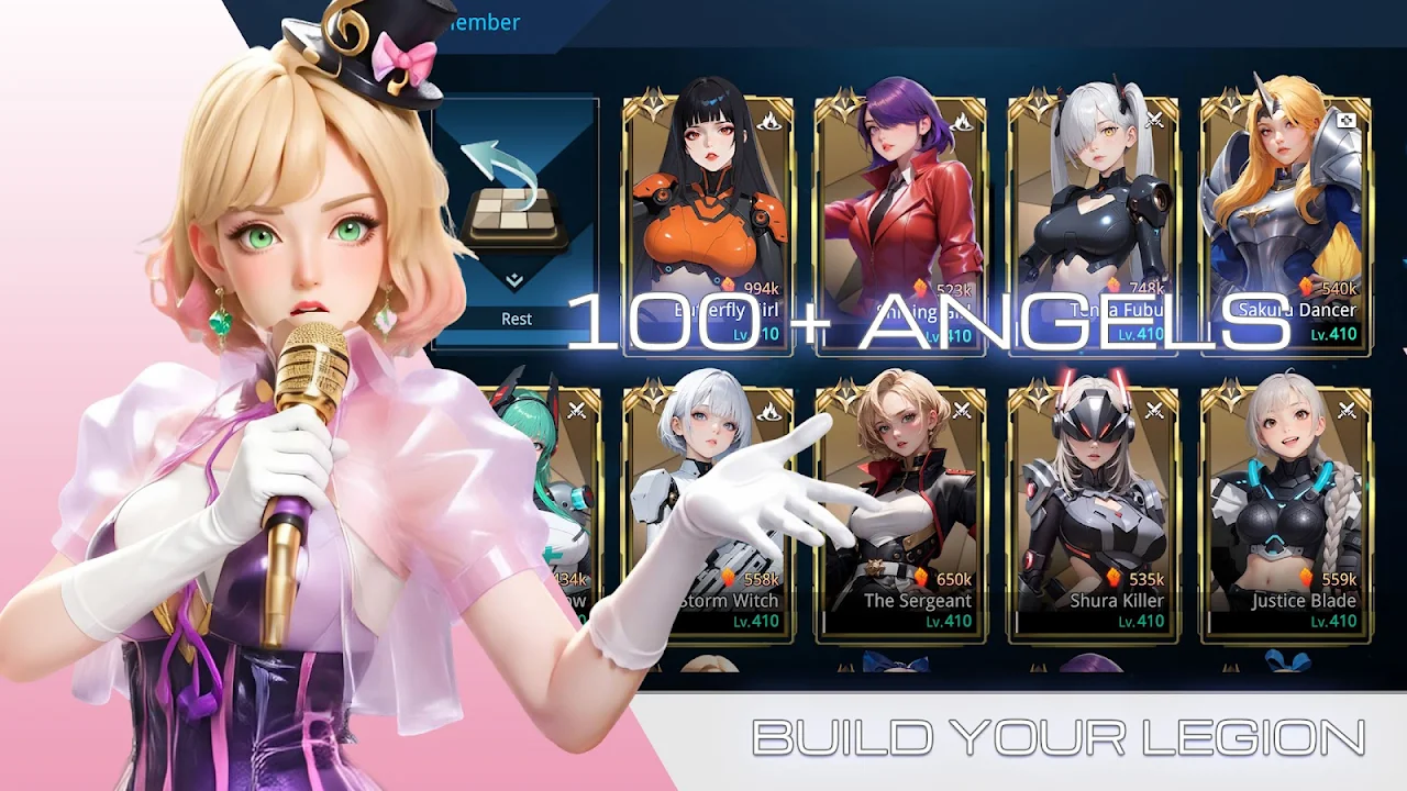 Recruit and upgrade 100+ elite angels, each with unique skills, combat roles, skins, and ultimate animations.