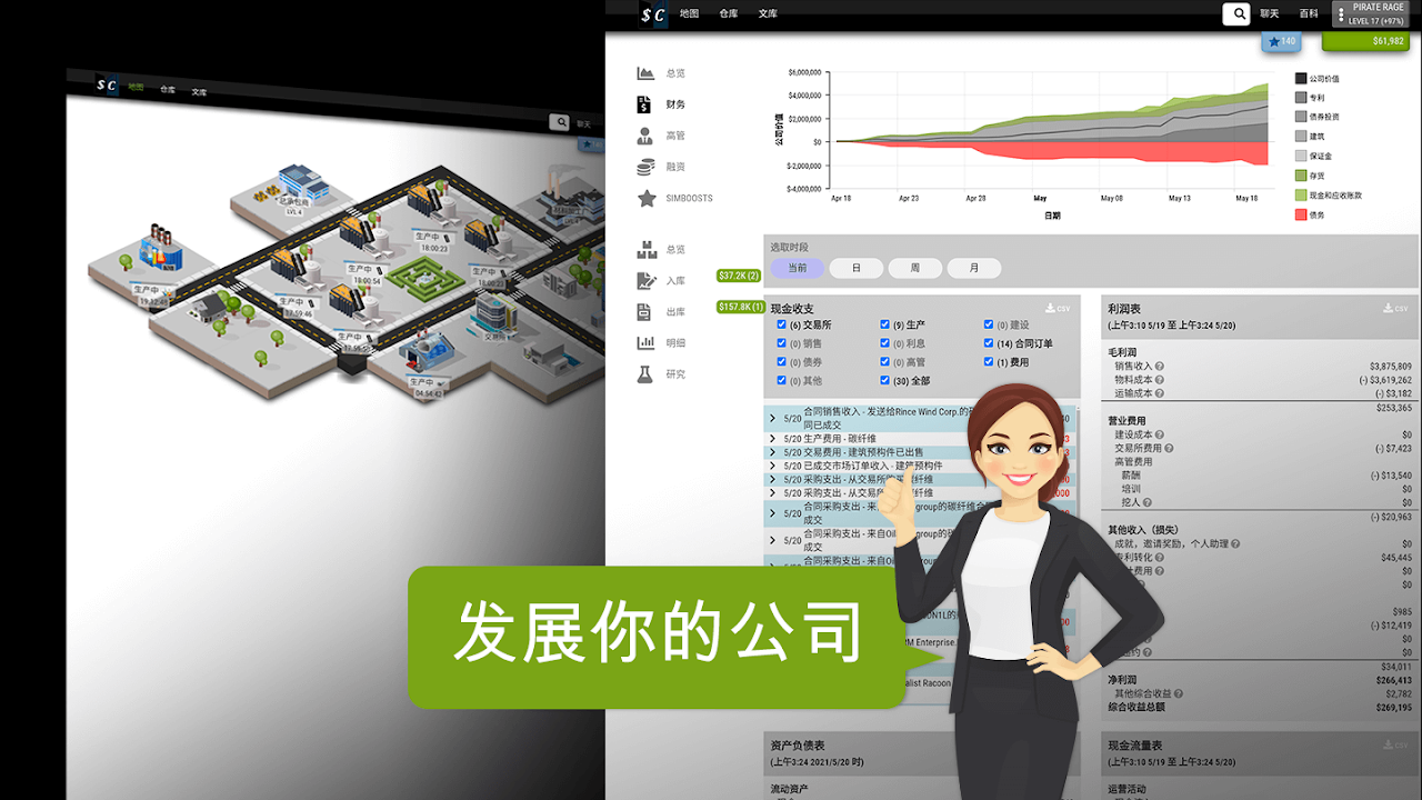 你想在虛擬經濟中跟其他玩家一起衡量自己的技能嗎?你想擁有一家生產,零售,或研究公司嗎?這完全取決於經濟中的當前狀況以及你尋找業務機會的熟練程度。 Sim Companies是一款功能強大的線上遊戲,讓你嘗試各種各樣的物資,並於遊戲中的其他玩家進行測試。 Sim Companies是一款商業模擬策略遊戲,為了讓你提供使用現實世界經濟原理管理公司的樂趣和經驗。這遊戲的目標是創造有利可圖的競爭公司。每個玩家獲得啟動資金和一些資產。玩家的日常任務包括管理物資供應鏈,從生產到零售,尋找合作夥伴,確保融資等。為了讓玩家繁榮,他們將必須能夠解釋和理解市場狀況並在某個地方獲得一些交易捷徑,也需要他們在市場上購買的輸入物資要比生產他們便宜,或者在市場上出售的利潤要比零售高。玩家甚麼時候合適投資研究?我們考慮了什麼是公司管理的有趣,什麼讓它變得乏味。 Sim Companies的理念是讓你在建立自己的業務時做出有趣的決定,而不需要處理太多複雜的額外的是指。我們不想用所有法律和其他限制來模擬現實世界和經濟,而是讓玩家自由指定可能影響他們公司財務和價值的決策。