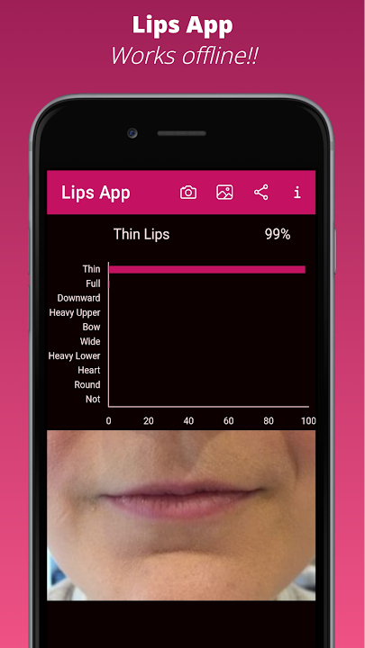🔬 AI-Powered Precision: Powered by cutting-edge machine learning techniques, Lips App offers unparalleled accuracy in identifying lip types. Rest assured that you'll receive precise and reliable results, providing you with valuable insights into your lip structure.