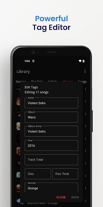 Shuttle 包含一個內建標籤編輯器,並提供了通常不穩定的 Android 媒體商店的替代方案。使用 Shuttle,您的播放清單不會遺失,並且您的標籤將正確匯入。支援多種媒體格式,S2 隨附 Opus 和 FLAC 的內建軟體編解碼器。