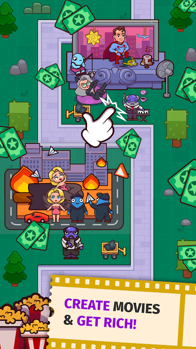 Become a successful movie owner and great idle manager by managing this cinema tycoon! Build movie pavilions, make movies of different genres and rent them in the TV simulator. Earn money and hire minions - cinions to improve your idle success.