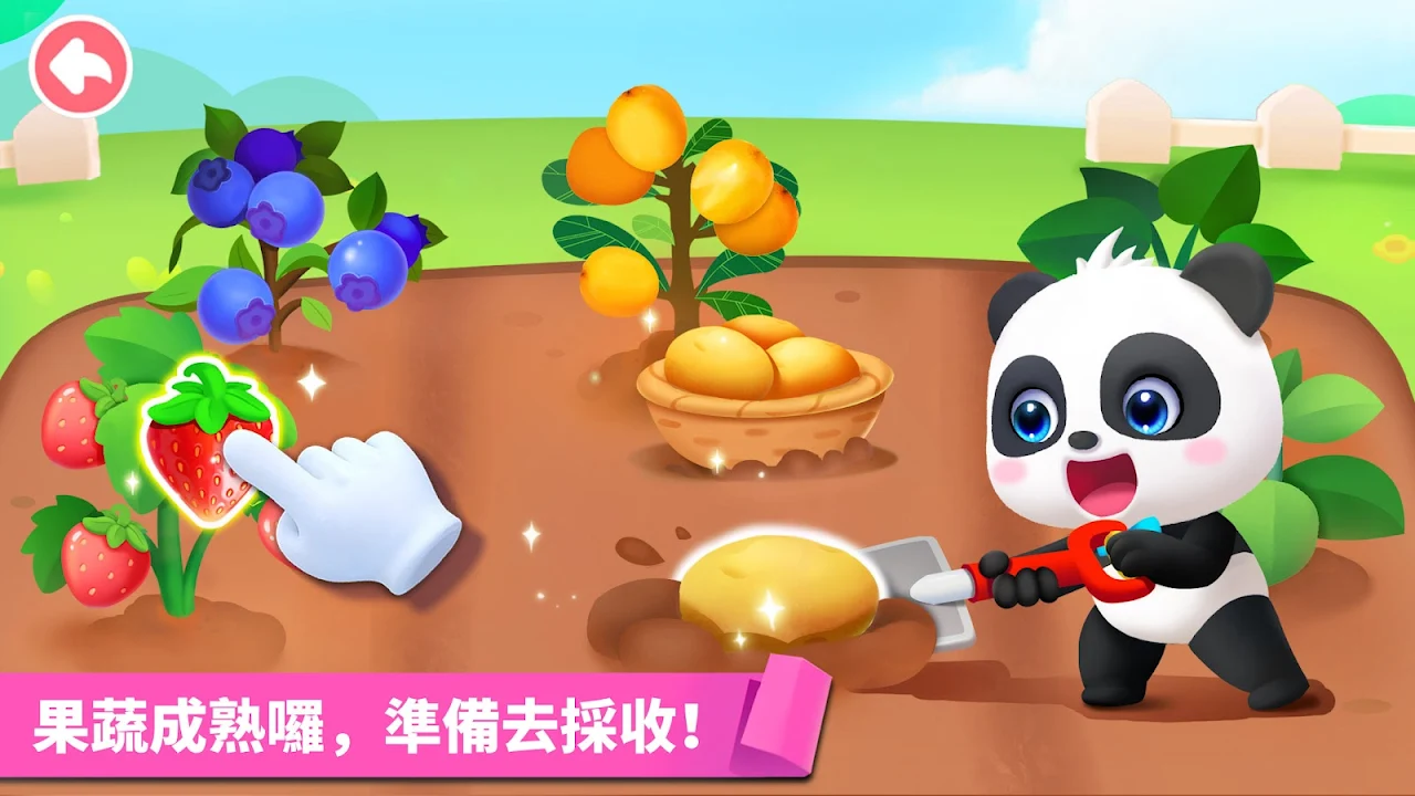 出發去果園,採摘水果。有蟲!小朋友先拿起捕蟲網,對準蟲蟲,先把它們抓走再採摘;小朋友試試挖馬鈴薯,拿穩小鏟子,刨開土壤,小心不要傷到馬鈴薯……學習內容進一步拓展,讓小朋友學會尊重勞動者。