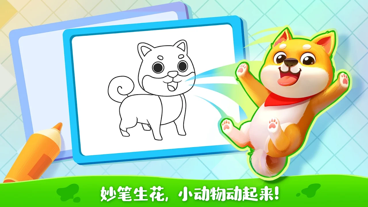 除此以外,这还是一款具有魔力的涂色游戏!当你完成涂色之后,点击魔法棒,就可以将画作变成真实的事物:奔跑的小狗、疾驰的校车等,非常有趣!