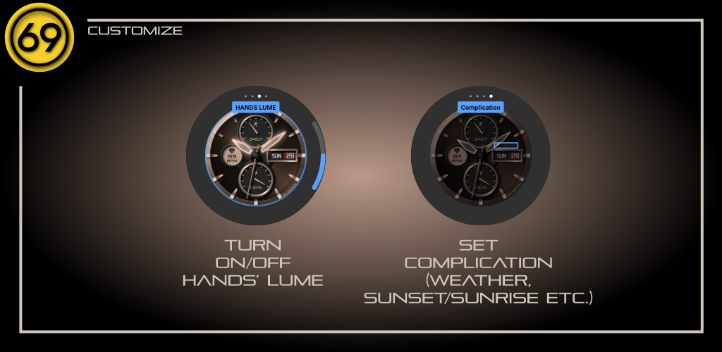 適用於 Wear OS 手錶的可定制模擬錶盤。