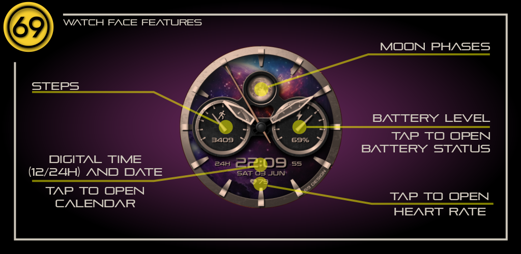 此表盘与大多数 Wear OS 设备兼容,但请记住,它会在装有最新 Wear OS 软件版本的新设备上运行得最好、最流畅。