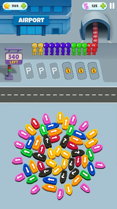 Feel the rush of traffic chaos in the city but in a fun, relaxing way! Dive into brain-boosting parking puzzles where every move counts. Tap and drag buses, cars, and flying taxis, boats, planes to clear the jam-packed lot and guide color-matched passengers to their correct vehicles. Once seated, these vehicles don't just drive, they take off and fly out of the traffic chaos. It's a stress-free, mind-sharpening activity that boosts your thinking power. From wild color turns to lift-off escapes, only the smartest drivers make it out of this traffic mess!