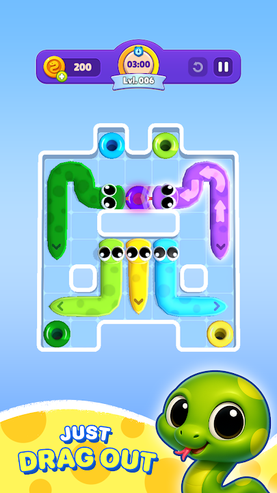 每條蛇都有不同的顏色編碼——將它與目標洞口匹配即可完成謎題。規則簡單,可能性無限!