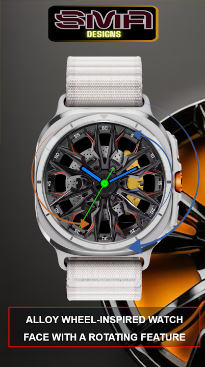 Wear OS Alloy wheel-inspired watch face with Gyroscop-activated rotation feature