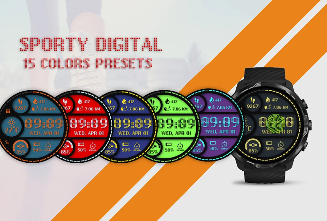 Sporty Digital Watch Face a is Fully customizable new Style Digital Wear OS (Android Wear) Watch Face and Clock Live Wallpaper for all Phones.