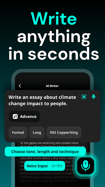 Faster Writing: With ai text, app can craft essays 10X faster and complete blogs, articles, and emails within seconds.