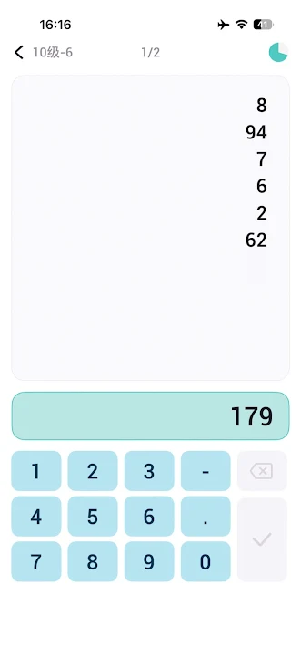 闯关模式总共分为10个等级,200个小关卡。分别对应于珠心算10级至珠心算1级的水平和能力鉴定标准。其中各个小关卡的难度循序渐进,而每个大等级的考试关卡,完全对标“珠算式心算鉴定标准”等级考试规范的试卷题目。可以让考生朋友们及速算爱好者们得到最充分的珠心算训练,并鉴定自身的心算水平。珠心算5级的水平,也对应于会计师资格考试中电算化证书的相应等级,相关人士可以充分练习。珠心算考试及鉴定标准中,8~10级仅包含加减算,1~7级还包含乘算、除算。本应用考试关卡的设置、难度、时间、题目数量、题目种类完全符合相应考试的标准,如果同学们能够顺利通过本应用中相应等级的考试,则可以认为具备同等级珠心算资格,可以放心地参加等级鉴定考试。