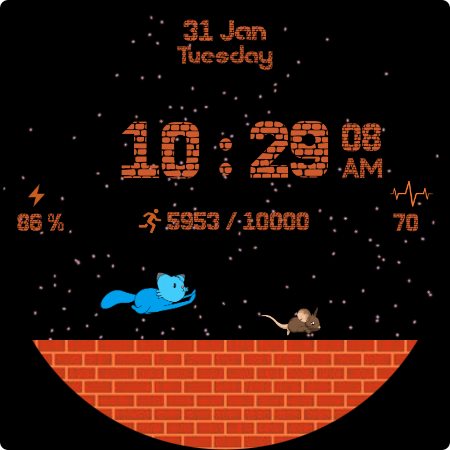Gaming Running Cat Mouse 表盘旨在为 Wear OS 上的表盘提供游戏外观。