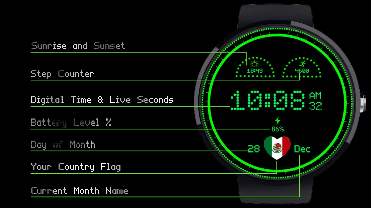 Dotted Digital WatchFace is here to make you feel more loved with your country.