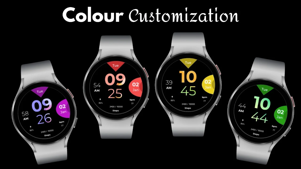Gradient Ultra 是一款适用于 Wear OS 手表的酷炫多重酷色渐变组合表盘。