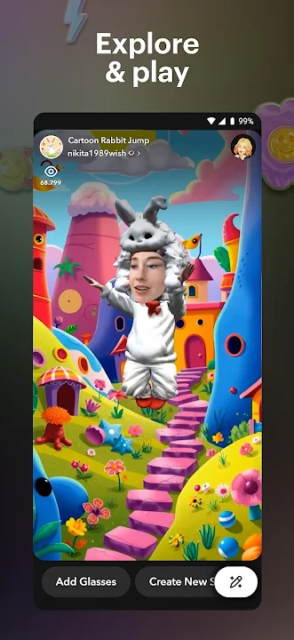 • Discover Lenses across beauty, funny effects, and immersive experiences.