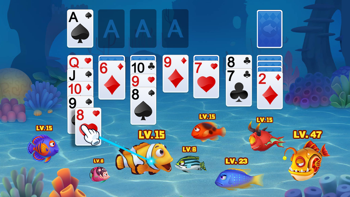 在經典紙牌接龍(又稱單人紙牌)的基礎上,我們為您建立了一座包含豐富魚類的創意水族館。