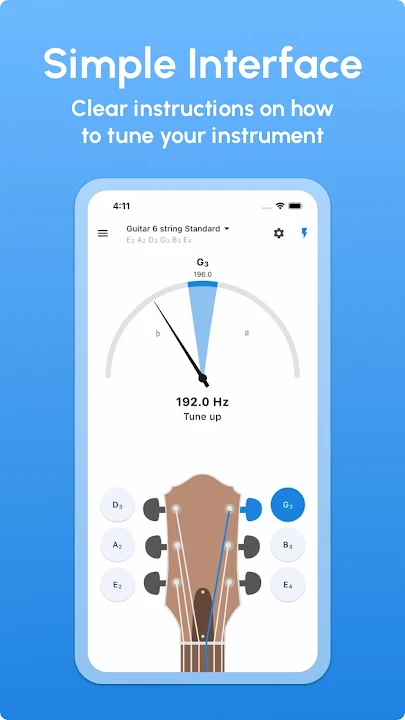 Tune the guitar faster with the automatic mode. You can play any note, and we will properly detect it to give you hints on how to tune a guitar.