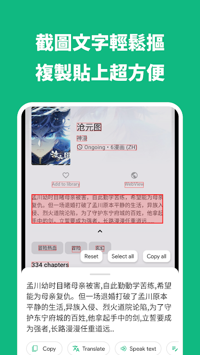 • 漫畫模式 - 專為漫畫/動漫設計的翻譯,支援直排文字