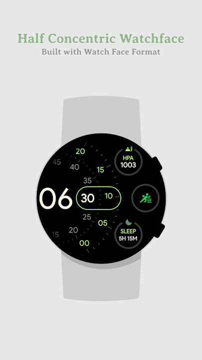 以 Pixel Watch 为灵感的半表盘同心面,采用表盘格式构建