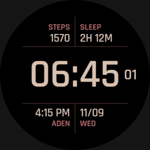 Minimal, clean and classic digital watch face for Wear OS, with four configurable complication spaces.