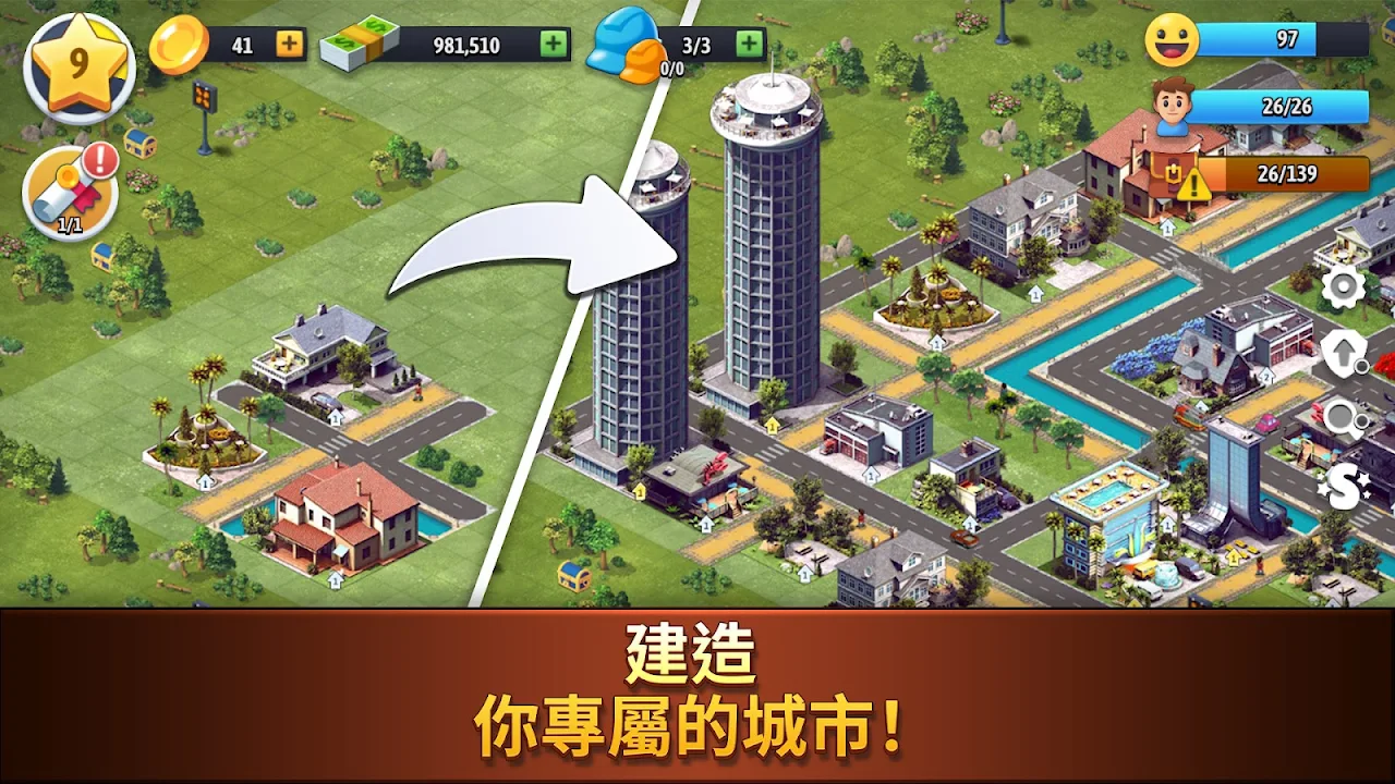在這個城市建設者模擬遊戲中升級以解鎖新的大亨功能。合併、收集、裝飾等等!通過建造許多不同的建築來解鎖新島嶼,例如咖啡館、餐廳、晚餐、花園、農場、賭場、城鎮、帝國或舒適家園,等等。建設和管理您的夢想之城,任您發揮!