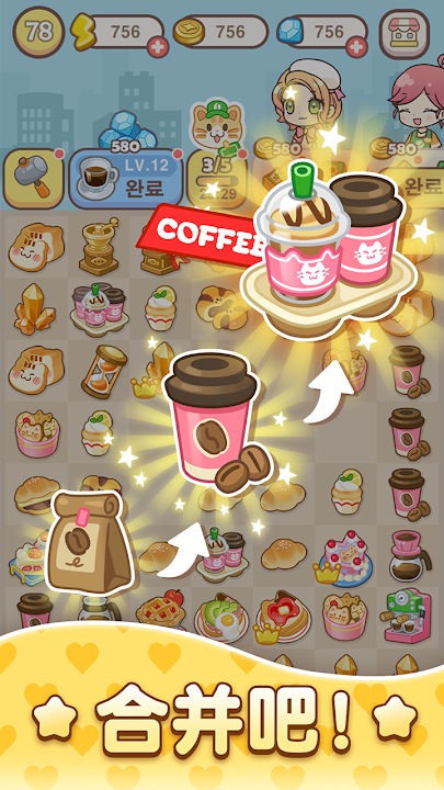 - 合并面包、咖啡和水果!结合相同的物品以升级为更高级的物品。