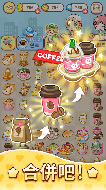 - 合併麵包、咖啡和水果!結合相同的物品以升級為更高級的物品。