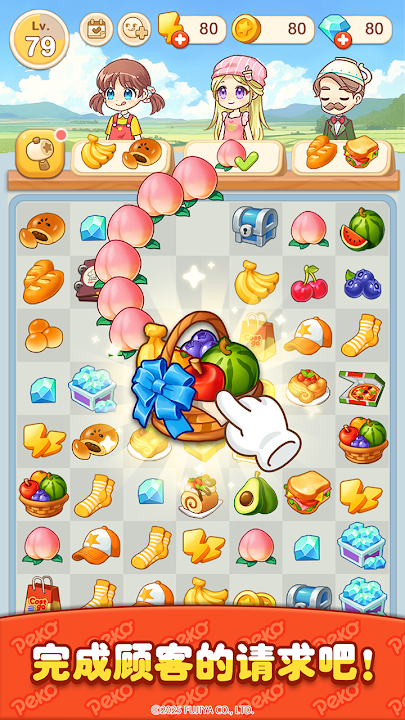- 合并面包、咖啡、水果等相同物品,升级为高级商品!
