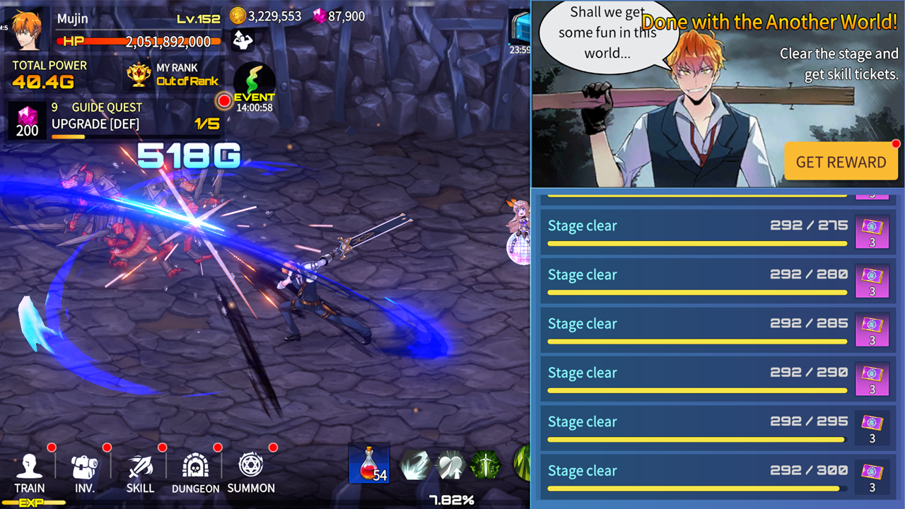 ‘Battle Ranker in Another World’ offers action satisfaction through high-quality hack-and-slash combat. Strategically use skills to achieve even more victorious moments!