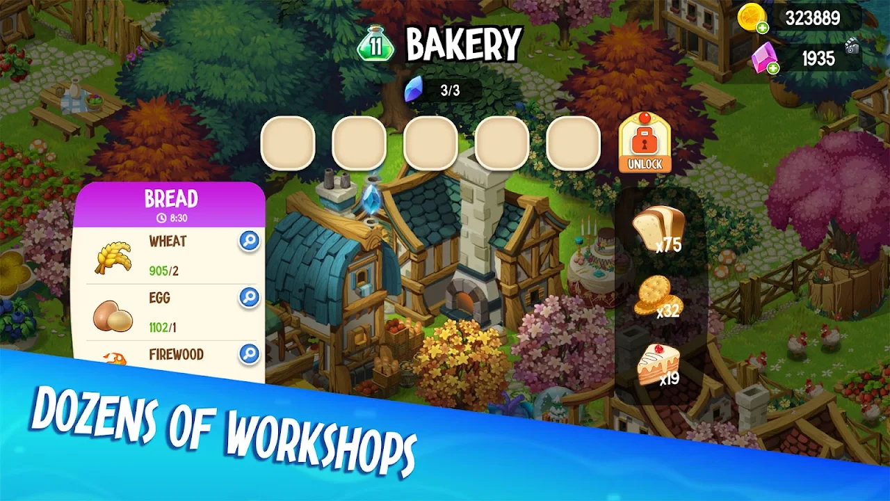 - 建造各种工坊来加工你收获的农产品,满足岛民的日常生活需求。