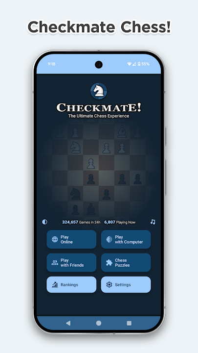 Checkmate 是一款现代国际象棋移动应用程序,设计友好,背景音乐为古典音乐,让您兴奋地发现这款精彩棋盘游戏的细微差别。我们为这款皇家游戏创建了一个新版本,创新且充满惊喜。该应用程序提供了与来自世界各地的玩家在线对战(获得积分)和与计算机离线练习对战(没有积分)的可能性。这款应用程序源于对国际象棋的迷恋——几个世纪以来,国际象棋一直吸引着世界各地数百万玩家的思想和心灵!