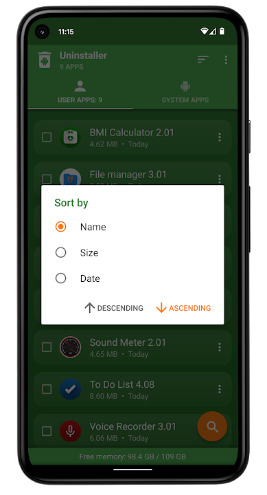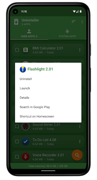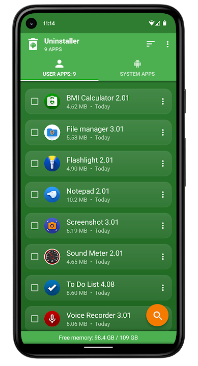 •支持删除单个或批量卸载(长按支持)的应用程序。