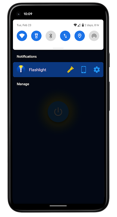 要快速访问您可以使用状态栏按钮(在通知区域可用),或点击您的主屏幕手电筒部件。