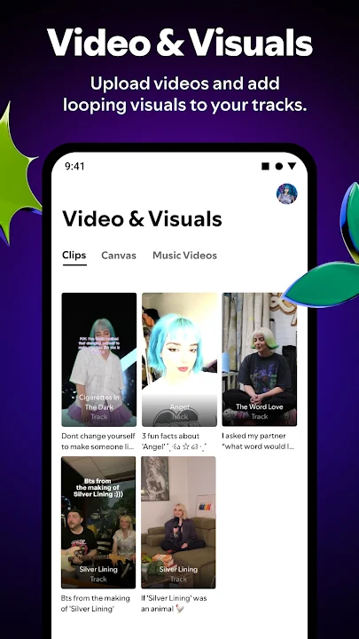 • 使用 Canvas 为每首曲目添加循环播放的短视频,尽情展现您的创意。
