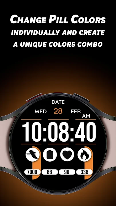使用我们的药丸表盘表盘,让您的 Wear OS 手表看起来更加独特、色彩缤纷。使用我们独特的着色系统,从一个表盘创建 120 种组合,您可以单独更改药丸颜色,并创建仅在您的手表上的独特颜色组合。
