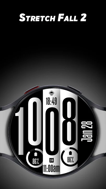 Give your Wear OS smartwatch a bold and modern makeover with the Stretch Fall 2 Watch Face! Designed with a sleek, minimal digital layout, this watch face features large, easy-to-read time displays, vibrant customization options, and versatile functionality to suit your daily needs.