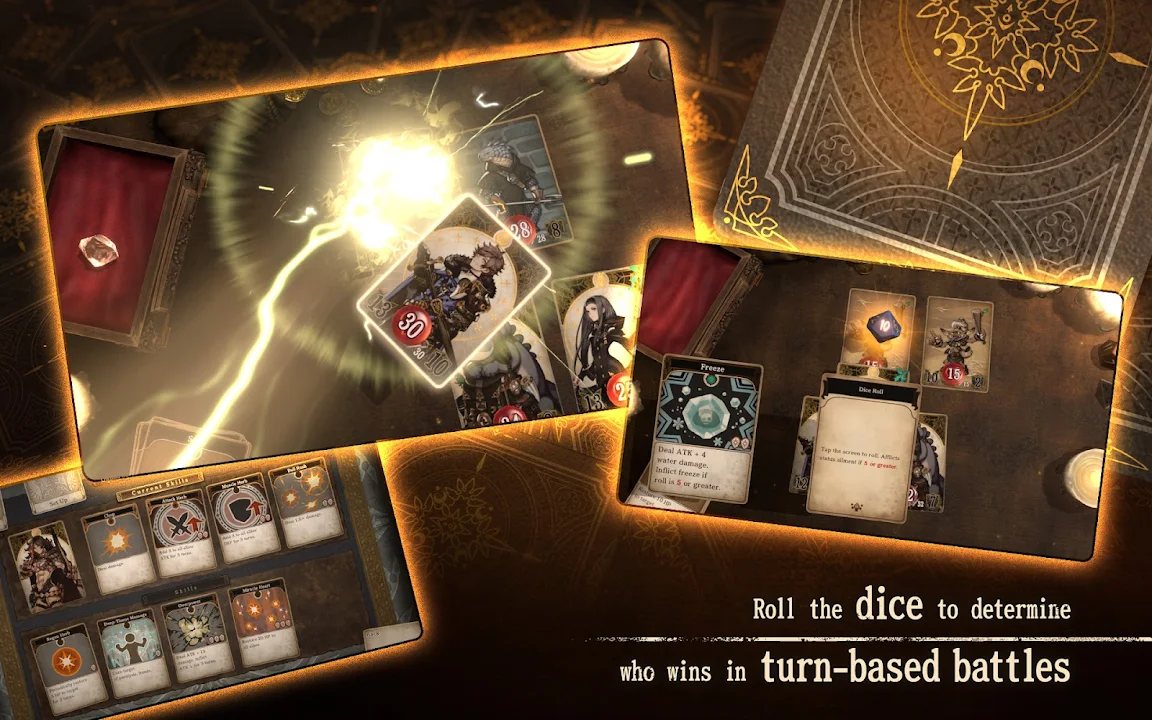 战斗采用回合制,宝石(释放技能所需的道具,每回合都会获得)是取胜的关键。您还可以通过掷骰子造成额外伤害或造成异常状态——这可能决定您的命运……