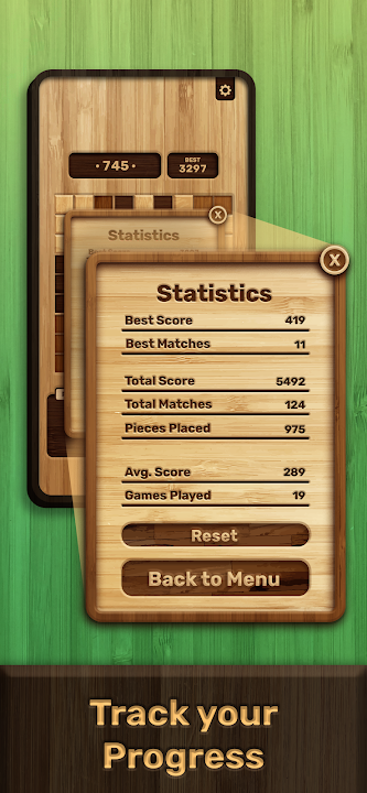 Strategize and place each piece wisely to shoot for high scores! Then, you can track your progress with the extended Statistics report.